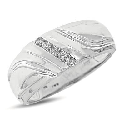 This 1/5 CT. T.W. Diamond Men's Wedding Band is made in 14K White Gold and has a width of 9.34 mm and 5 natural, conflict free diamonds.